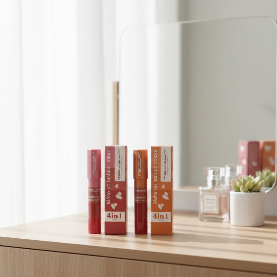 Achieve a flawless look awith the 4 in 1 Multicolor Lipstick and Eyeshadow Stick. Designed for both lips and eyes, this creamy makeup stick offers vibrant, long-lasting color in multiple shades. Its compact design makes it perfect for on-the-go touch-ups, combining four essential colors in a single stick. Ideal for creating bold or subtle looks with ease.